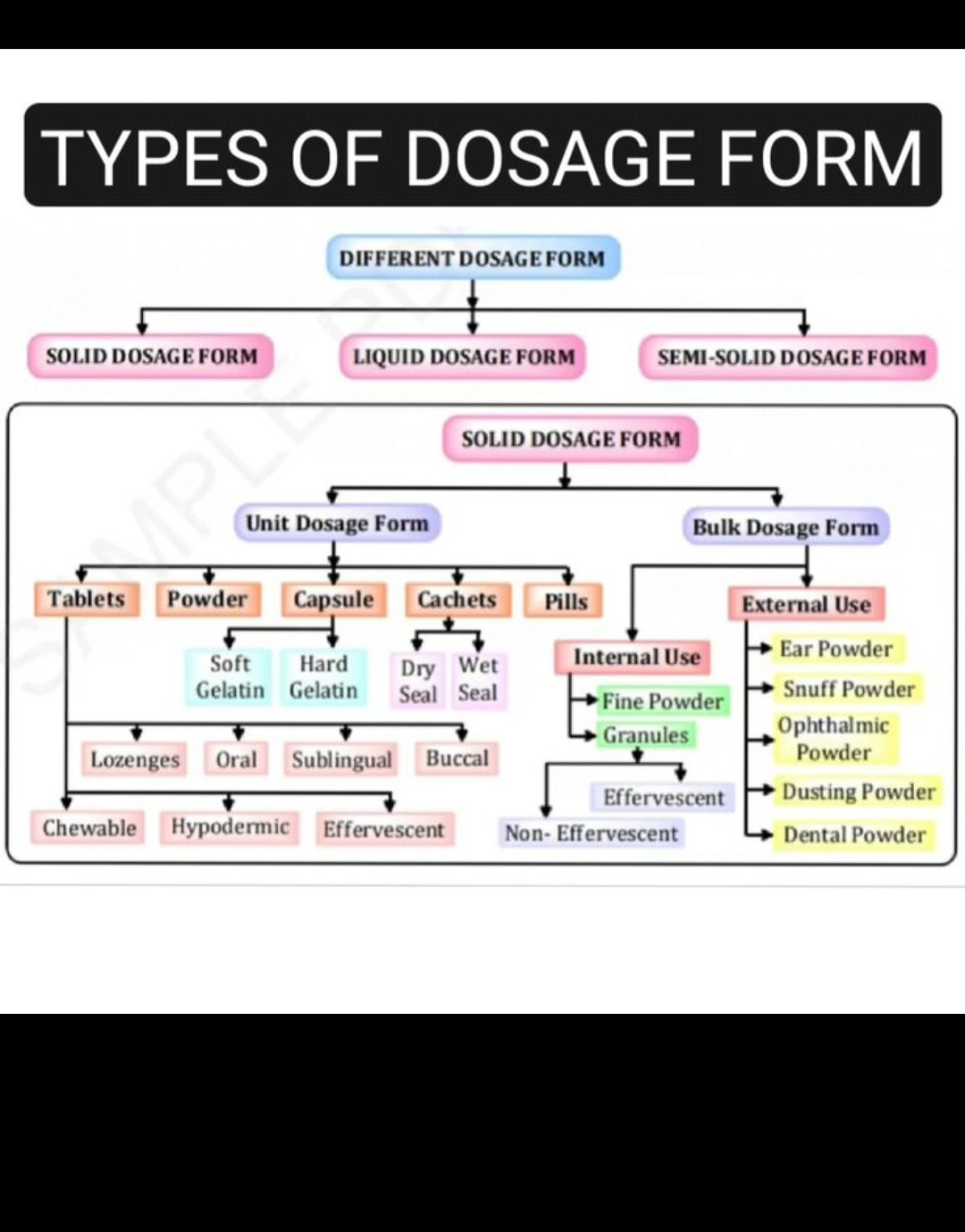 Solid forms include unit dosage forms like tablets and capsules as well as bulk forms such as powders and granules. They are convenient for accurate dosing, stable, and commonly administered orally. Examples: tablets, capsules, pills, lozenges, powders, granules, suppositories .